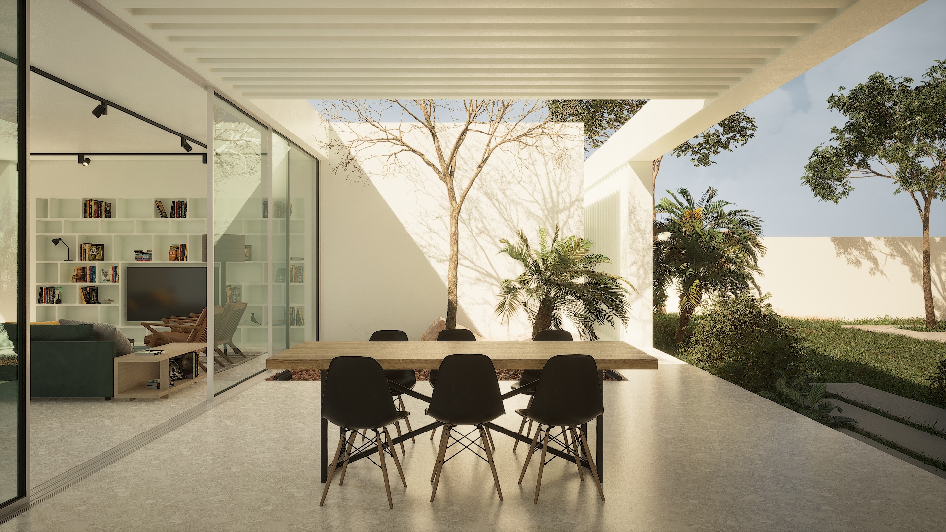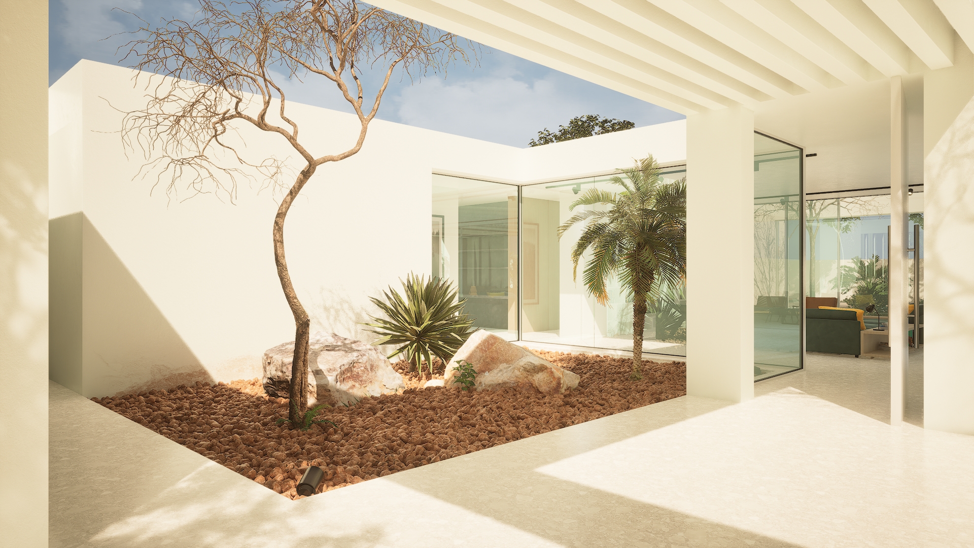 In this sample project, I created all renders and developed a VR-ready virtual tour. The tour includes advanced interactive features such as material changing, day–night mode, and in-scene video playback, allowing users to explore the space in a fully immersive and customizable way.